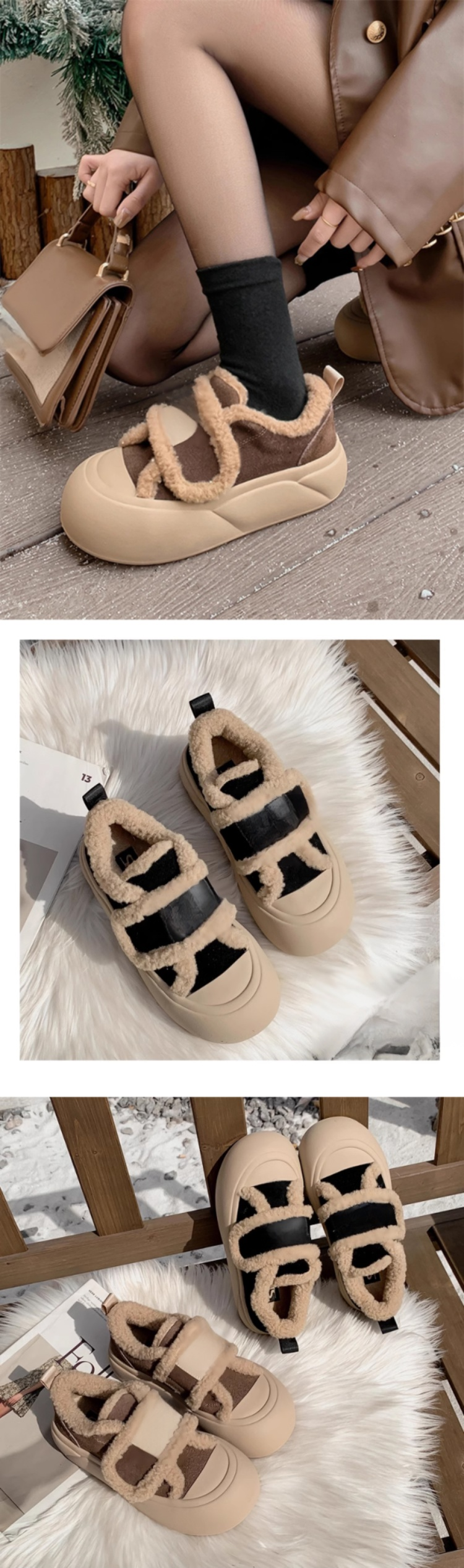 기모 도톰 여성용 벨크로 통굽 스니커즈